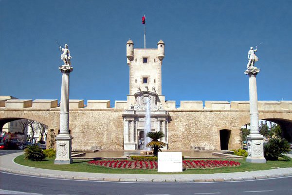 Designed by architect and academic Torcuato Cayon, with delicate carved marble cover. It is part of the ambitious plan of defense against pirates and enemies of the crown, covering the perimeter of the peninsula, formed by walls dotted with forts and bastions. The arches belong to a reform of the fifties, made by architect Antonio Sanchez Esteve. Separate the two Cadiz, Cadiz old, walled, and the new reclaimed land sea.